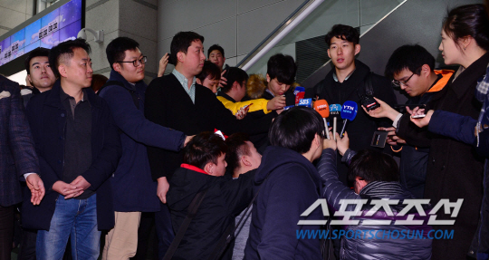 5일 오후 대한민국 대표 공격수 손흥민이 소속팀 레버쿠젠 복귀를 위해 인천국제공항을 통해 독일로 출국했다. 손흥민은 한국이 27년 만에 준우승을 거둔 '2015 호주 아시안컵'에서 3골을 터트리며 맹활약을 펼쳤다. 손흥민이 출국 전 인터뷰를 하고 있다. 인천공항=김경민 기자 kyungmin@sportschosun.com / 2015.02.05.