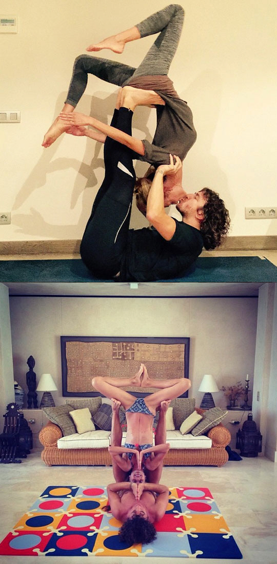 | 푸욜이 연인 로렌소와 함께 한 아크로바틱 요가. ⓒPuyol |