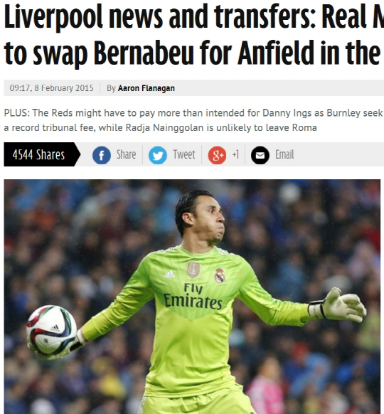 9일(한국시각) 영국 일간지 데일리스타는 리버풀이 올시즌 종료 후 케일러 나바스(레알 마드리드)의 영입을 시도할 예정이라고 보도했다. 나바스는 2014년 브라질월드컵의 낳은 스타다. 엄청난 선방쇼로 코스타리카의 돌풍을 이끈 나바스는 여름이적시장에 레반테를 떠나 레알 마드리드로 이적했다. 하지만 상황은 여의치 않았다. 이케르 카시야스에 밀려 도무지 출전기회를 잡지 못했다. 모처럼 출전한 경기에서는 실점하는 악순환이 이어졌다. 나바스는 결국 이적을 결심했다. 나바스의 에이전트 히카르도 카바나스는 "나바스가 레알 마드리드에 '떠나길 원한다'는 뜻을 전했다"고 했다.