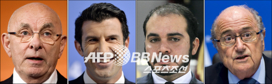 국제축구연맹(FIFA)이 회장 선거에 출마한 4명의 후보자를 발표했다. (왼쪽부터)미카엘 판프라흐 네덜란드 축구협회장-포르투갈 축구 영웅 루이스 피구-FIFA 부회장인 요르단의 알리 빈 알 후세인 왕자-5선에 도전하는 제프 블래터 회장 ⓒAFPBBNews = News1 |
