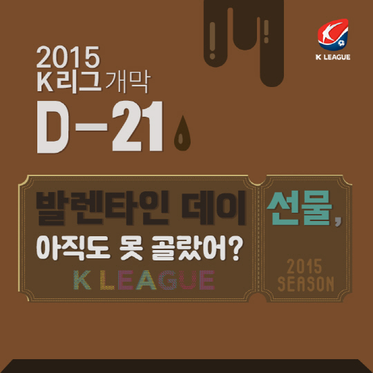 K리그 클래식 개막이 21일 앞으로 다가왔다. K리그 공식 개막전은 3월 7일 열린다. 2월 14일 발렌타인 데이에, 아직 남자친구를 위한 특벼한 선물을 준비하지 못했다면 K리그 시즌 티켓 선물을 추천한다. 축구를 좋아하는 남자친구라면 더할 나위없는 선물이다. 2015년 어떤 시즌티켓이 팬들을 기다리고 있을까.