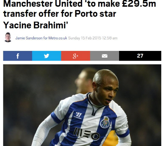 영국 언론들은 '맨시티가 먼저 브라히미에게 강력한 러브콜을 보내는 중이지만 맨유가 영입 경쟁에 뛰어들어 맨시티를 이길 준비를 하고 있다'고 보도했다.
