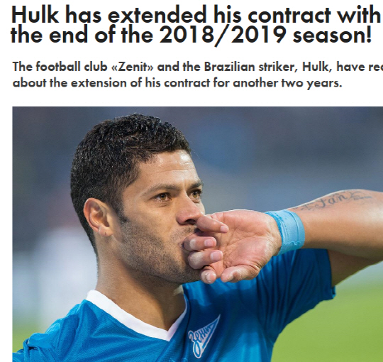 러시아의 제니트 상트페테르부르크가 헐크(29·브라질)와 재계약에 성공했다.