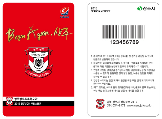 한편, 상주는 올해 캐치프레이즈를 담은 연간회원권을 지난 10일부터 판매한다. 이번 연간회원권은 기존의 디자인에서 탈피해 구단의 핵심 칼라인 강렬한 빨간색을 바탕으로 한 바디에 캐치프레이즈를 골드 빛으로 담아냈다.