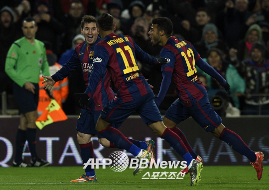 ◇메시가 역전 결승골을 터트린 후 환호하고 있다. 바르셀로나(스페인)=ⓒAFPBBNews = News1