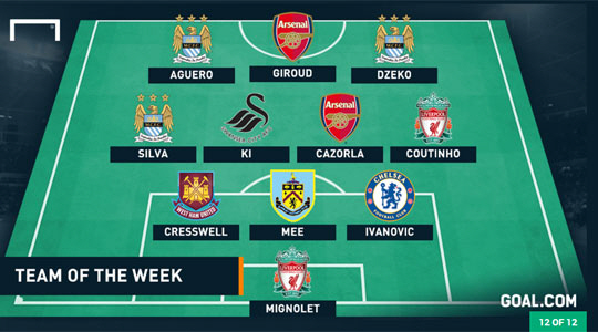 골닷컴은 최전방에 올리비에 지루(아스널)과 에딘 제코, 세르히오 아구에로(맨시티)를 꼽았다. 중원에는 기성용 외에 다비드 실바(맨시티)와 산티 카솔라(아스널), 필리페 쿠티뉴(리버풀)가 선정됐다. 수비진은 애런 크레스웰(웨스트햄)과 벤 미(번리), 브라니슬라프 이바노비치(첼시)로 구성됐으며, 골키퍼는 리버풀의 상승세를 이끈 시몽 미뇰레가 뽑혔다.