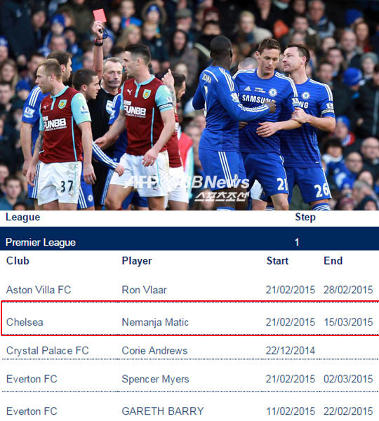 첼시의 핵심 선수인 네마냐 마티치가 오심으로 인한 퇴장에 이어 3경기 출장정지 징계를 받았다.