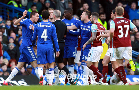 FA는 23일 공식 트위터를 통해 네마냐 마티치(첼시)와 몸싸움을 빚었던 에슐리 반스(번리)에 대해 무징계 결정을 내렸다. 마티치와 반스는 22일 런던 스탬포드브리지에서 열린 잉글랜드 프리미어리그(EPL) 26라운드 경기 도중 충돌했다. 후반 24분 반스는 마티치의 정강이를 발로 밟았다. 심한 태클이었다. 마티치는 폭발했다. 반스에게 달려가 그를 밀쳤다. 마틴 앳킨스 주심은 마티치에게만 퇴장을 명령했다. 첼시 선수들과 무리뉴 감독까지 항의했지만 판정은 번복되지 않았다. 이에 대해 FA는 마티치에 대해 3경기 출전 정지 징계를 내렸다.