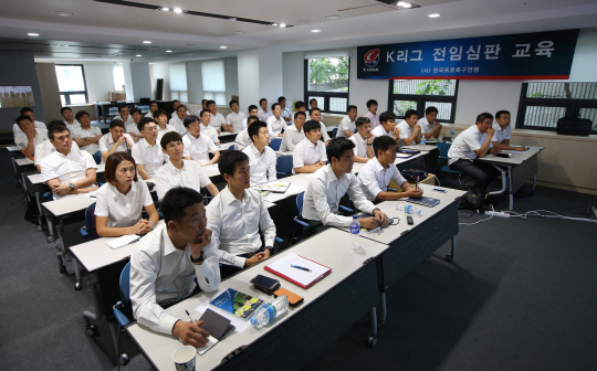 한국프로축구연맹 심판위원회는 24일 서울 신문로 축구회관에서 2015년 제1차 프로심판 간담회를 열고 올 시즌 판정 가이드라인을 밝혔다. 올 시즌 K리그 클래식과 챌린지(2부리그)에선 대한축구협회 심판평가소위원회를 통해 선발된 46명(주심 22명·부심 24명)이 활동한다.