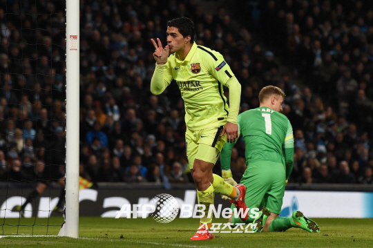 바르셀로나는 25일(이하 한국시각) 영국 맨체스터의 이티하드 스타디움에서 벌어진 2014~2015시즌 유럽챔피언스리그 16강 1차전에서 맨시티를 2대1로 꺾고 8강 진출에 유리한 고지를 선점했다. 루이스 수아레스가 날았다. 홀로 2골을 터트리며 팀 승리를 이끌었다.