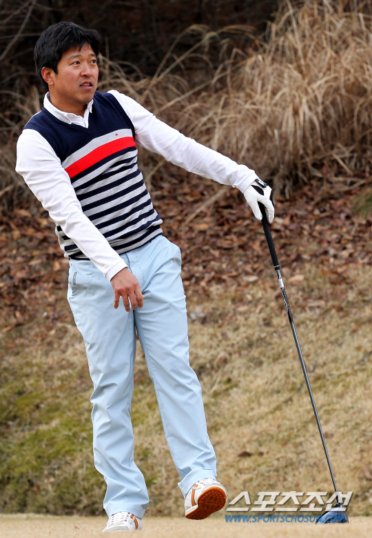 대한축구협회가 주최하고, 일간스포츠 스포츠서울 스포츠조선 스포츠동아 스포츠경향 스포츠월드 스포츠전문미디어 6개사가 공동으로 주관하는 '축구인 자선골프대회'가 26일 오전 경기도 용인 골드컨트리클럽에서 열렸다. 고종수 코치가 티샷을 하고난뒤 궤적을 바라보고 있다. <용인=사진공동취재단> 송정헌 기자 songs@sportschosun.com/2015.02.26