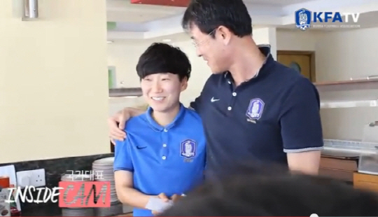 생일케이크를 나눠드리기 위해 권하늘이 윤덕여 감독 등 코칭스태프의 테이블로 다가갔다. 윤덕여 감독이 "이리 와보라"며 손짓했다. 윤 감독이 권하늘과 나란히 선수단앞에 섰다. "여러분들 심신이 지치고 힘들 텐데 남은 한경기 잘할 거라 믿어. 너무 그렇게 축 처져 있을 필요 없어"라며 선수단을 격려했다. "남은 한경기, 하늘이가 생일도 맞고 분위기가 전환돼서 좋은 경기해줄 거라고 생각해. 잘했으면 좋겠어. 알겠지?"