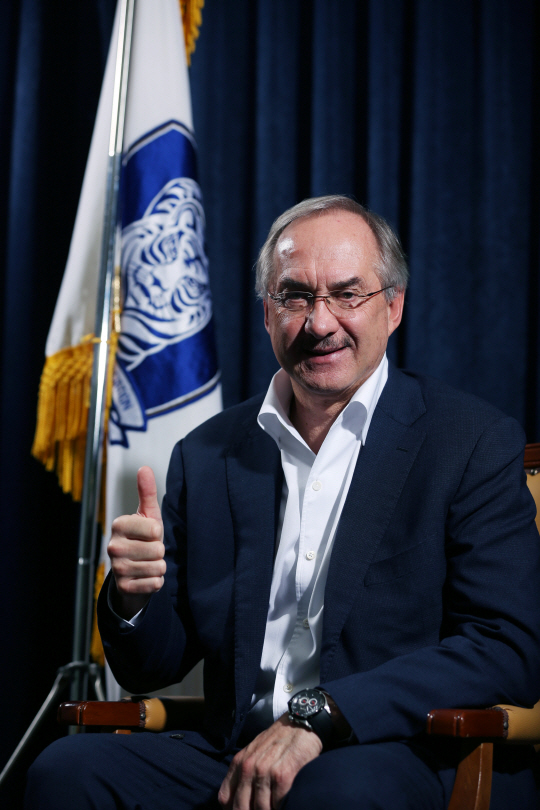 4일 서울 신문로 축구회관에서 국내 취재진과 좌담 형식의 인터뷰를 갖고 있는 울리 슈틸리케 감독. 사진제공=대한축구협회