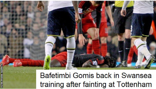 경기 중 갑작스럽게 쓰러졌던 스완지시티의 공격수 바페팀비 고미스가 팀 훈련에 정상적으로 합류했다.