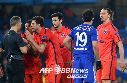 이날 PSG의 간판 선수인 즐라탄은 전반 31분 '위험한 태클'이라는 이유로 퇴장당했다. 오스카(첼시)와 경합하는 과정에서 발을 높게 들었다는 것. 하지만 즐라탄은 발을 빼는 동작을 취하고 있었고, 스터드가 노출된 상황도 아니었던 만큼 오심에 가까운 판정이었다. 양팀 감독도, 중계하던 해설진도 즐라탄의 퇴장에 어이없다는 반응을 보였다.