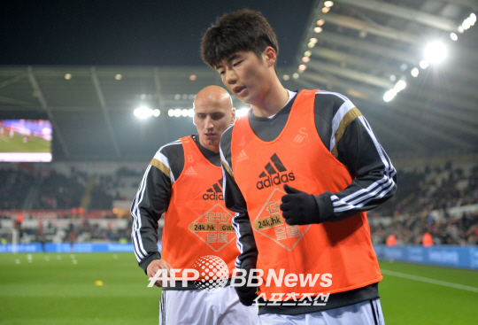 | 17일 영국 스완지 리버티스타디움에서 열린 리버풀전에 앞서 몸을 풀고 있는 기성용. ⓒAFPBBNews = News1 |
