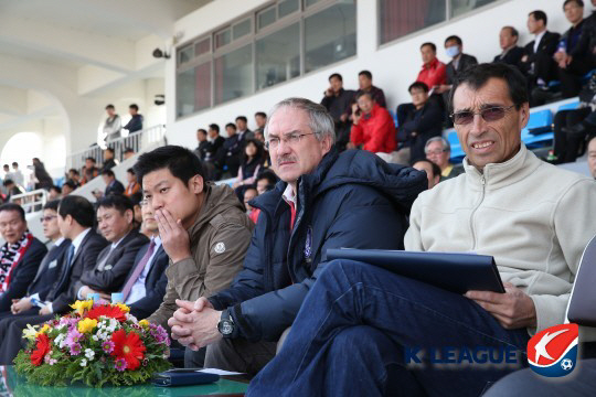 | 상주시민운동장에서 상주-강원의 K리그 챌린지 개막전을 관전하고 있는 울리 슈틸리케 감독. 사진제공=프로축구연맹 |