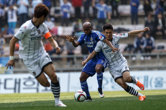 울산의 질주가 3경기 만에 멈췄다. 전남과의 홈 경기서 무득점 무승부에 그쳤다. 앞서 FC서울과 포항을 상대로 6골을 터뜨렸던 가공할 득점력이 자취를 감췄다. 2경기서 평균 5개였던 유효슈팅은 전남전에서 단 1개(전체슈팅 7개)에 그쳤다. 후반 막판 김신욱이 기막힌 오른발 트래핑에 이은 터닝 논스톱슛으로 골문을 위협한 게 그나마 돋보이는 장면이었다. 후반 20분 김태환이 비신사적 플레이로 퇴장 당해 수적 우위를 점한 전남이 오히려 수비를 강화하는 선택을 하지 않았다면 패할 수도 있었던 경기였다. 단독선두로 3월 A매치 휴식기에 돌입하기를 내심 바랐던 울산 팬들 입장에선 아쉬움이 남을 만했다.