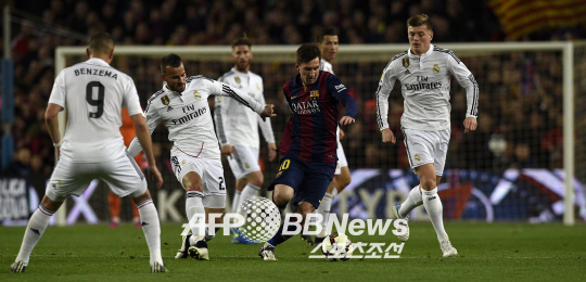 전반 초반부터 레알 마드리드의 메시 압박은 결사적이었다. 마르셀루와 세르히오 라모스 역시 쉴새없이 빈 틈을 메꿨다. 사실상 메시가 움직일 공간이 보이지 않을 정도였다. 때문에 이날 전반의 메시는 평소와 달리 매서운 드리블 돌파나 환상적인 키핑, 혹은 수비진을 찢는 패스를 보여주지 못했다.