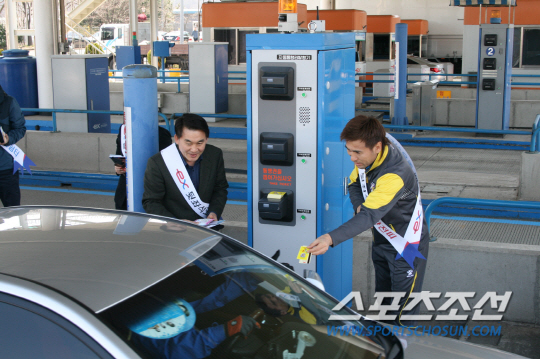 '레전드 수문장' 김병지(45·전남 드래곤즈)가 고속도로 톨게이트에서 안전운전 캠페인 및 전남 홈경기 홍보활동을 펼쳤다.