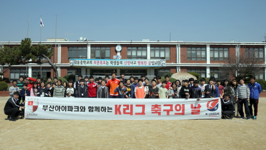 프로축구 부산 아이파크가 'K리그 축구의 날(25일)'을 맞아 부산시 강서구 대저동에 위치한 낙동중학교를 방문해 뜻깊은 시간을 가졌다.