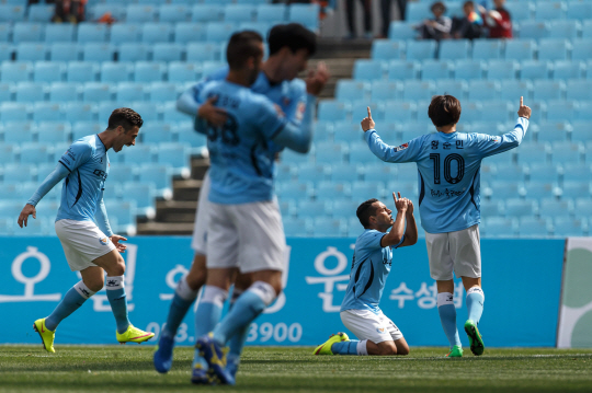 이 감독은 "원정 첫 경기서 아쉬운 결과에 그쳤다. (강원전이) 홈 개막전이었던 만큼 부담감이 컸다"며 "첫 승을 위해 끝까지 열정적으로 뛰어준 선수들에게 고맙다"고 웃었다. 경기 후 그라운드로 내려온 조 대표이사는 '아빠미소'로 선수단을 일일이 격려하며 승리의 기쁨을 나눴다.