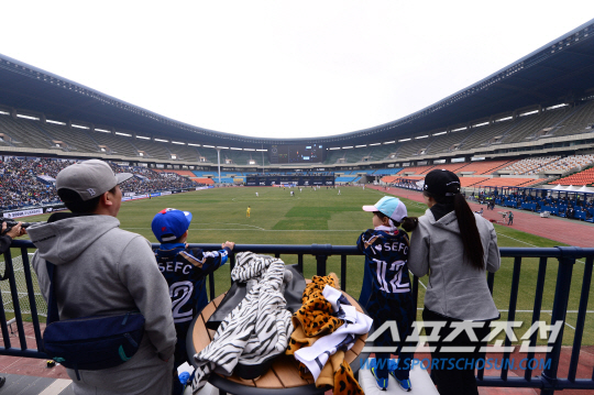 김태완 이랜드 단장은 첫 경기를 앞둔 25일 경기장을 소개하며 "경기에 대한 몰입도를 높이겠다. 새로운 즐거움을 선사하고 싶다"고 했다. 그의 말대로였다. 경기장 내 모든 시설과 이벤트는 '몰입도 증가'와 '새로운 즐거움 제공'에 초점을 맞췄다. 그라운드 바로 앞에 설치된 가변좌석은 축구에 대한 몰입도를 높였다. 골대 뒤 스카이박스와 스탠딩석 역시 명물이 됐다. 이랜드의 골키퍼 김영광은 "관중들이 이야기하는 소리도 들리더라. 그만큼 가까웠다. 관중들이 경기에 몰입할 수 있었을 것"이라고 말했다. K리그 타구단과 타종목의 관계자들도 눈에 띄었다. 이들은 경기장 곳곳을 다니며 사진을 찍었다. 한 관계자는 "생각보다 가변 좌석 등을 잘 만들었다. 벤치마킹하고 싶다"고 했다.