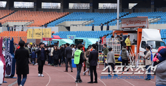 서울 이랜드 FC가 29일 오후 잠실주경기장내 홈구장 '레울 파크'에서 FC안양을 상대로 2015 K리그 챌린지 첫 경기를 펼쳤다. 경기장을 찾은 팬들이 푸드트럭에서 간식을 즐기고 있다. 잠실=송정헌 기자 songs@sportschosun.com/2015.03.29