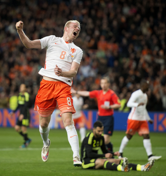 1일(한국시각) 암스테르담 아레나에서 열린 스페인과의 평가전에서 전반 13분 스테판 데 브라이, 16분 데비 클라센의 연속골로 2대0으로 이겼다. 주도권은 네덜란드가 쥐고 나갔다. 스페인은 직전 열렸던 우크라이나와의 경기에서 나온 선발 명단에서 9명을 교체했다. 패스 플레이에서 실수를 연발했다. 이 틈을 파고들었다. 전반 13분 베슬레이 스네이더의 크로스를 데 브라이가 깔끔한 헤딩골로 연결했다. 3분 뒤 클라센이 루시아노 나르싱의 패스를 받아 오른발 슈팅을 날렸다. 스페인 다비드 데헤아 골키퍼를 맞고 나온 것을 클라센이 재차 슈팅하며 쐐기를 박았다.