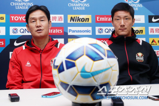 ◇FC서울 최용수 감독과 김진규가 6일 오후 호주 시드니 파라마타스타디움에서 2015 아시아축구연맹(AFC) 챔피언스리그 H조 4차전을 앞두고 기자회견을 하고 있다. 시드니(호주)=사진공동취재단