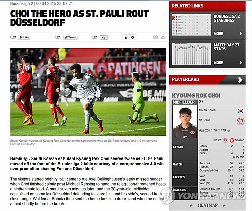 독일 상파울리(2부리그)의 미드필더 최경록(20)이 주인공이다. 최경록은 7일(한국시각) 독일 함부르크 밀레른토어 스타디온에서 열린 뒤셀도르프와의 2014~2015시즌 독일 분데스리가 2부 리그 27라운드 홈경기서 2골-1도움을 기록했다. 최경록의 맹활약 속에 장 파울리는 4대0 대승을 거뒀다.