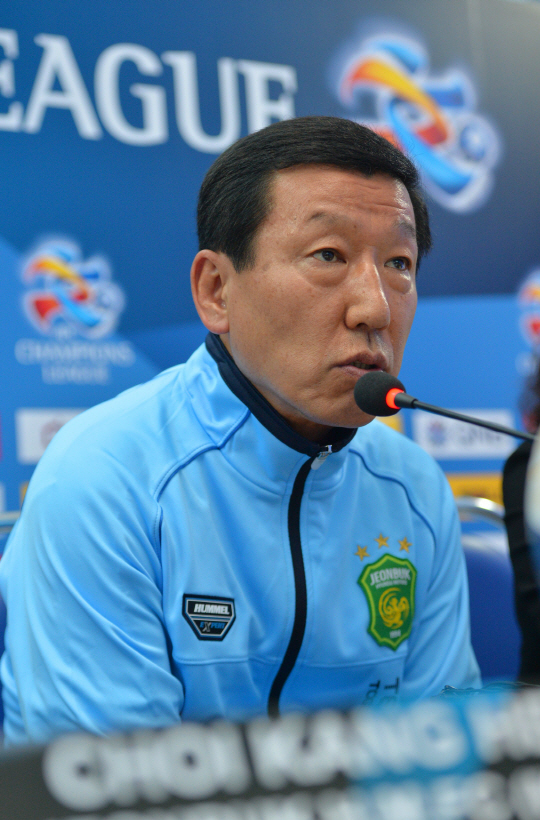 | 전북현대 최강희 감독이 7일 베트남 빈즈엉스타디움에서 2015 아시아축구연맹(AFC)챔피언스리그 E조 4차천을 앞두고 기자회견을 하고 있다. /빈즈엉(베트남)=사진공동취재단 |