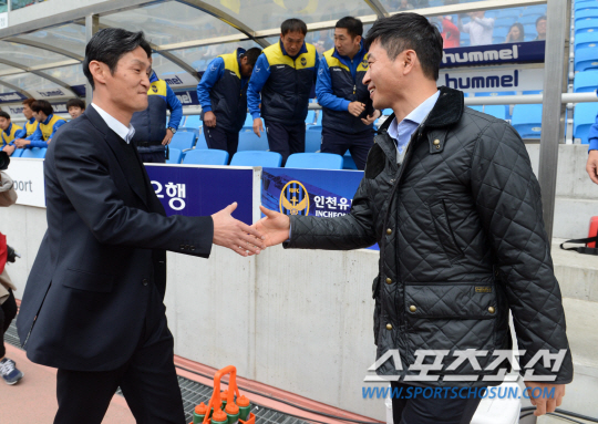 김 감독도 양보는 없었다. 그는 "고등학교 때부터 그라운드에서 만났고, 대학은 같이 다녔다. 선수 때는 최 감독보다 내가 나았다"며 웃은 후 "감독이 돼 최 감독이 잘하고 있다. 이젠 내가 도전하는 입장이다. 1승에 대한 마음이 간절하다. 오늘이 사실상 최상의 명단이다. 그만큼 이기고 싶다"고 했다. 두 감독은 동시대에 그라운드를 누빈 스트라이커 출신이다. 대학에선 동고동락했다. 연세대 1년 선배인 김 감독은 올 시즌 인천의 지휘봉을 잡았다.