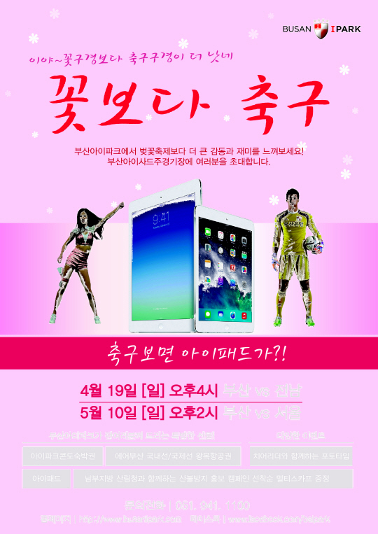 이밖에도 실용성이 높은 섬유유연제, 깔끔한 디자인의 머플러, 남녀노소 누구에게나 인기 높은 사인볼과 5월 10일 서울전 등 무료 입장권까지 준비해 부산 아이파크의 올 시즌 테마인 '축구는 축제다'에 걸맞게 홈경기를 찾아준 팬들이 빈손으로 돌아가지 않게 하겠다는 생각이다.