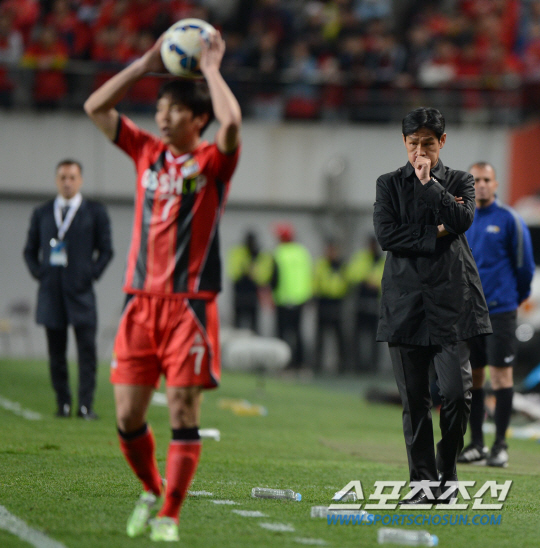 FC서울과 광저우 에버그란데(중국)의 아시아축구연맹(AFC) 챔피언스리그 조별리그 H조 5차전 경기가 21일 서울월드컵경기장에서 열렸다. 서울 최용수 감독이 경기를 지켜보고 있다. 서울은 1승 2무 1패 승점 5점으로 2위에 올라있고 3승 1패 승점 9점을 획득한 광저우는 승점 1점만 추가해도 토너먼트 진출을 확정짓는다. 상암=허상욱 기자 wook@sportschosun.com/2015.04.21/ |