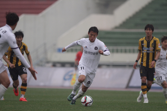 올 시즌 초반 K리그 챌린지(2부 리그) 득점 선두를 달리고 있는 무명 선수가 눈에 띈다. '시민과 함께하는 100년 구단' FC안양의 공격수 안성빈(27)이다.