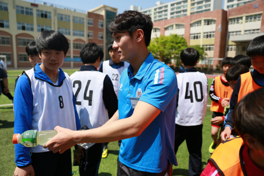 본리중에는 김진혁 김래훈 신희재, 상원중에는 김동진 김현수 이진재가 각각 방문했다. 프로그램은 체육수업, 배식봉사, 팬 사인회 순으로 진행됐다. 준비운동으로 시작된 체육수업은 공 뺏기, 패스, 볼 트래핑 등 기본기 교육과 수분섭취교육으로 이어졌다. 마지막에는 팀을 나누어 다함께 경기를 하며 즐거운 시간을 보냈다. 배식봉사와 팬 사인회에도 많은 학생들이 몰려 성황을 이뤘다.