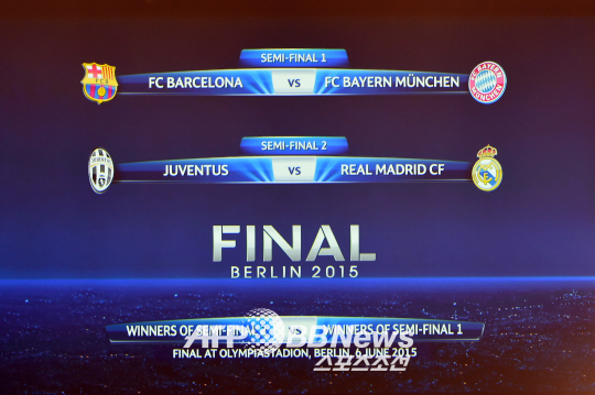 유럽축구연맹(UEFA)은 24일(한국시각) 스위스 니옹에서 열린 UCL 4강 대진을 추첨했다. 그 결과 바르셀로나와 뮌헨, 레알마드리드와 유벤투스가 맞붙는 것으로 확정됐다.