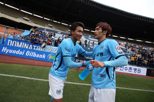 대구는 25일 대구스타디움에서 가진 충주와의 2015년 현대오일뱅크 K리그 챌린지 6라운드에서 2대1로 이겼다. 이날 승리로 대구는 승점 11이 되면서 수원FC(승점 10)를 제치고 선두로 뛰어 올랐다.