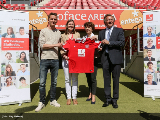 샬케와의 분데스리가 30라운드 경기를 '백혈병 퇴치를 위한 후원의 날'로 지정했다. 그리고 특별 유니폼을 제작했다. 자선단체인 'DKMS'가 마인츠의 유니폼 가운데에 자리 잡았다. 백혈병 퇴치에 가장 좋은 홍보 수단이었다. 이렇게 되기까지 기존 스폰서 'ENTEGA'사의 '통큰 배려'가 있었다. 'ENTEGA'의 볼프 헤르트빅 CEO는 "뜻 깊은 행사에 참여해 기쁘다. ENTEGA 사 역시 백혈병 퇴치를 위해 후원할 것이다. 유니폼 스폰서는 양보하지만 이날 행사의 메인 후원사로 나설 것이다"고 말했다. 이에 마인츠의 하랄드 스트루츠 회장은 "ENTEGA 사의 배려와 후원에 깊은 감사를 표한다" 고 화답했다. 'ENTEGA'사는 유니폼 광고로 얻는 유형적인 가치 대신 사회적 기업이라는 무형적 가치를 택한 것이다.