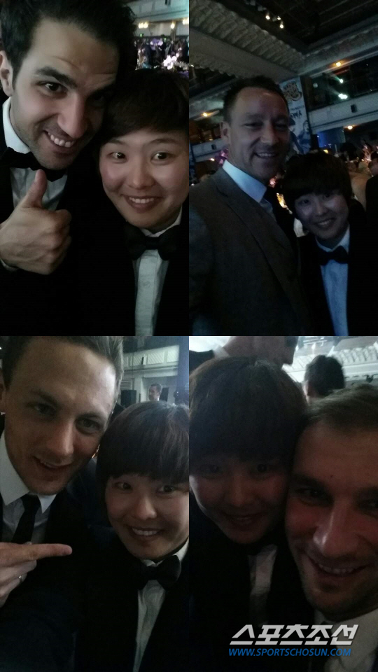 첼시 동료들과 수상의 기쁨을 만끽했다. "첼시 남녀 선수들이 테이블에 함께 앉아 밥먹고 이야기하고 사진도 찍고 즐거운 시간을 보냈다"며 웃었다. "아자르, 파브레가스, 존 테리, 이바노비치, 마티치, 드록바 등 함께 사진 찍고 이야기를 나눴다"며 웃었다. "상을 받고 나서, 존 테리 선수가 볼 뽀뽀를 해줬다. 이바노비치에게 '사진 찍자'고 하니까, 자기가 먼저 찍자고 부탁하려 했다더라"고 했다. "마티치는 엄지를 치켜세우며 축하한다고 하더라." 월드클래스 선수들 사이에서 '월드클래스' 지메시의 존재감이 반짝반짝 빛났다.