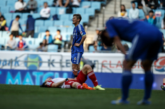 울산의 4월은 기지개를 펴는 봄처럼 밝았다. 전남전 무득점 무승부 뒤 가진 광주전에서 2대0으로 완승하면서 다시 연승 행진에 시동을 거는 것처럼 보였다. 그러나 4월 끝자락의 울산은 웃음기가 사라졌다. 광주전 뒤 치른 4경기에서 모두 1대1 무승부에 그쳤다. 단순히 결과의 문제가 아니다. 상대의 면면이나 경기 내용을 보면 한숨이 나올 법하다. 수원전을 제외하면 대전 인천 부산 등 올 시즌 유력한 강등후보들을 상대로 끌려다니는 경기를 했다. 25일 부산전에서는 후반 막판 터진 자책골로 안방에서 겨우 체면을 차렸다. '준국가대표급' 스쿼드로 불리면서도 1골의 벽을 넘지 못한 채 카운터(역습)에 급급하는 내용의 연속이었다. 시즌 무패(3승5무)의 고공비행 중이지만 누구 하나 웃질 못하고 있다. '전통의 명가' '만년 우승후보' 답지 못했다.