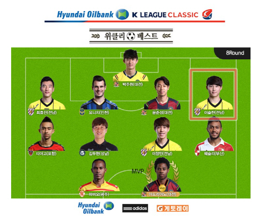 29일 프로축구연맹이 발표한 이슬찬은 첫 선발에서 첫 베스트11에 올랐다. 클래식 12개 팀 왼쪽 풀백 가운데 가장 눈부신 활약을 펼쳤다는 뜻이다. 이슬찬은 "제가 잘한 것보다 우리팀 형들이 많이 도와주시고, 잘해주셔서 뽑힌 것같다"고 했다. "다음에 또 언제 경기에 출전할지 모르지만, 항상 준비하는 자세로, 팀에 보탬이 되겠다"는 소감을 밝혔다. '롤모델'에서 '한솥밥 선배'가 된 최효진에 대한 감사를 표했다. 이슬찬의 원래 포지션은 왼쪽이 아닌 오른쪽이었다. 고등학교 시절, 10살 위 대선배 최효진은 그의 롤모델이었다. "효진이형은 고등학교 때부터 팬이었고 닮고 싶은 선수였다. 올시즌 효진이형이 전남에 오셔서 좋은 말씀을 정말 많이 해주신다. 포지션이 겹친다는 걱정보다는 배우고 싶다는 마음이 더 크다"고 했다. 이날 이슬찬은 '롤모델' 최효진과 나란히 리그 베스트11에 선정됐다. "효진이형과 함께 뛴 첫 선발경기라서 더 좋은 추억이 될 것같다. 효진이형이랑 같이 뛰었고, 전북을 이겼고, 함께 베스트 11이 됐다"며 웃었다.
