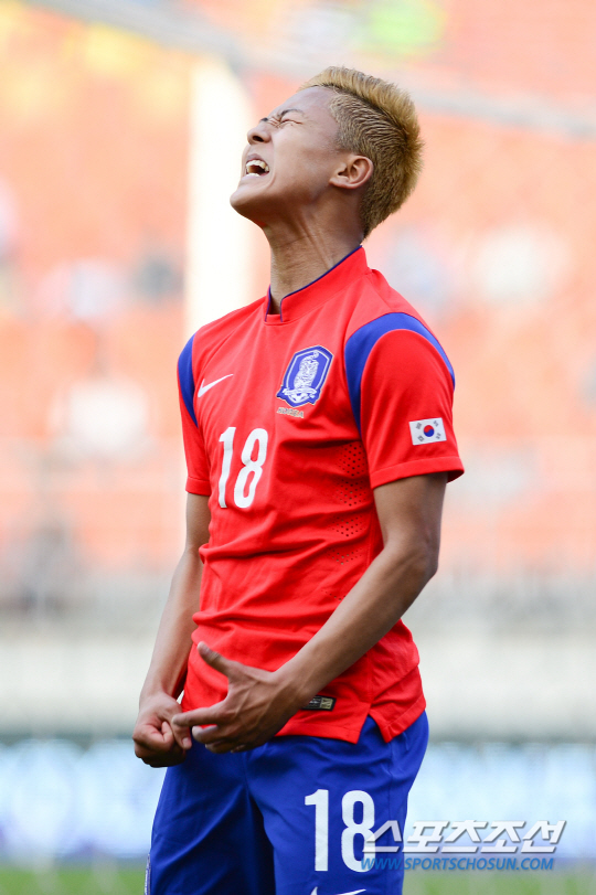 대한민국과 벨기에가 1일 오후 수원 월드컵경기장에서 열린 2015 수원 JS컵 국제청소년 축구대회(U-18)에서 맞대결을 펼쳤다. 한국 이승우가 골을 넣는데 실패한 후 아쉬워하고 있다. 수원=정재근 기자 cjg@sportschosun.com/2015.05.01/ |