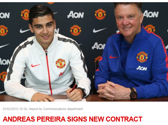 맨유가 벨기에 출신 유망주 안드레아스 페레이라(19)와 재계약했다.