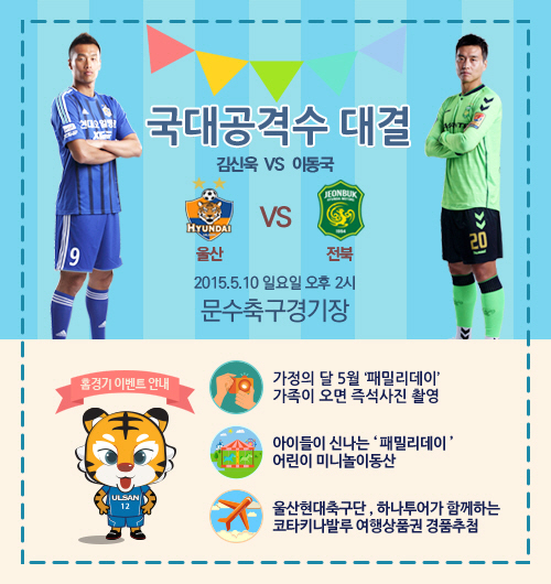 울산은 경기를 관람 온 가족들에게 즉석사진을 선물하는 '패밀리 포토존' 이벤트도 준비했다. E1 출입문 안 마련된 '패밀리 포토존'에서 즉석가족사진을 선물한다. 또 가족 방문객을 대상으로 '패밀리 포토제닉' 이벤트도 진행할 예정이다.