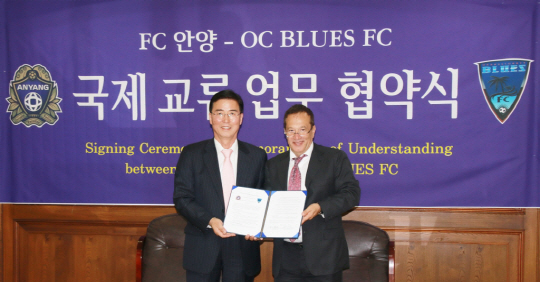 FC안양이 미국 USL 소속의 O.C. Blues FC와 다양한 국제 교류 사업을 위한 협약을 체결했다.