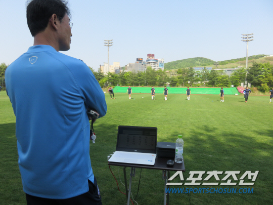 9일 오후 4시 파주NFC, 윤덕여 여자대표팀이 선수들을 믿음직한 표정으로 바라봤다. 캐나다월드컵(6월6일~7월5일)을 앞두고 마지막 담금질을 위해 지난 8일 입소한 여자축구 대표팀 선수들이 충무구장에 일렬로 늘어섰다. 선수들의 심폐 지구력과 유산소 능력, 회복 능력을 평가하기 위한 요요 테스트, '공포의 20m 셔틀런'이 예고됐다. 일명 '삑삑이'라고도 불리는, 20m 양쪽 콘 사이를 쉴새없이 오가는 '왕복달리기'다. 단계별로 짧아지는 기준 시간 내에 20m 거리를 오가며 '극한'의 체력에 도전해야 한다. 스트레칭으로 몸을 푼 후 스타트대에 선 선수들 사이엔 결연한 긴장감이 감돌았다. 윤 감독이 현장에 설치된 노트북 모니터링 화면을 주시했다. "여기 너희 심박수가 실시간으로 다 뜬다. 박희영 102, 전가을 144, 시작도 하기 전에 뭐 이렇게 심장이 뛰어? 긴장했어?" 긴장감을 풀어주려는 코칭스태프의 농담에 웃음이 터져나왔다.