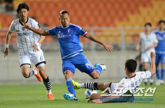 전남도 그냥 물러서진 않았다. 후반 17분 오르샤가 아크 정면에서 수비수를 앞에 두고 시도한 오른발 중거리포가 빨랫줄처럼 뻗어 그대로 수원 골문 오른쪽 상단에 꽂혔다. 서 감독은 실점 직후 서정진 대신 이상호를 내보내며 공세를 강화하는 쪽을 택했다.