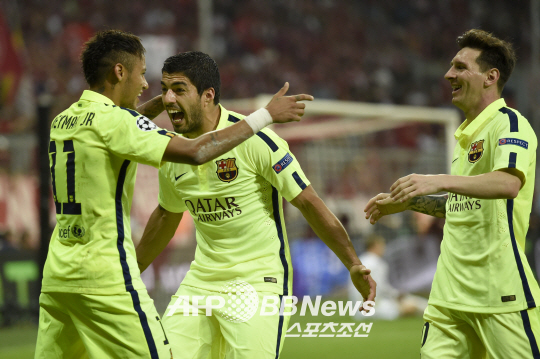 바이에른 뮌헨(독일)과의 유럽챔피언스리그 4강 1차전(3대0 승)에선 메시가 2골-1도움, 네이마르가 1골을 기록했다. 2차전에선 네이마르가 2골, 수아레스가 2도움을 올렸다.